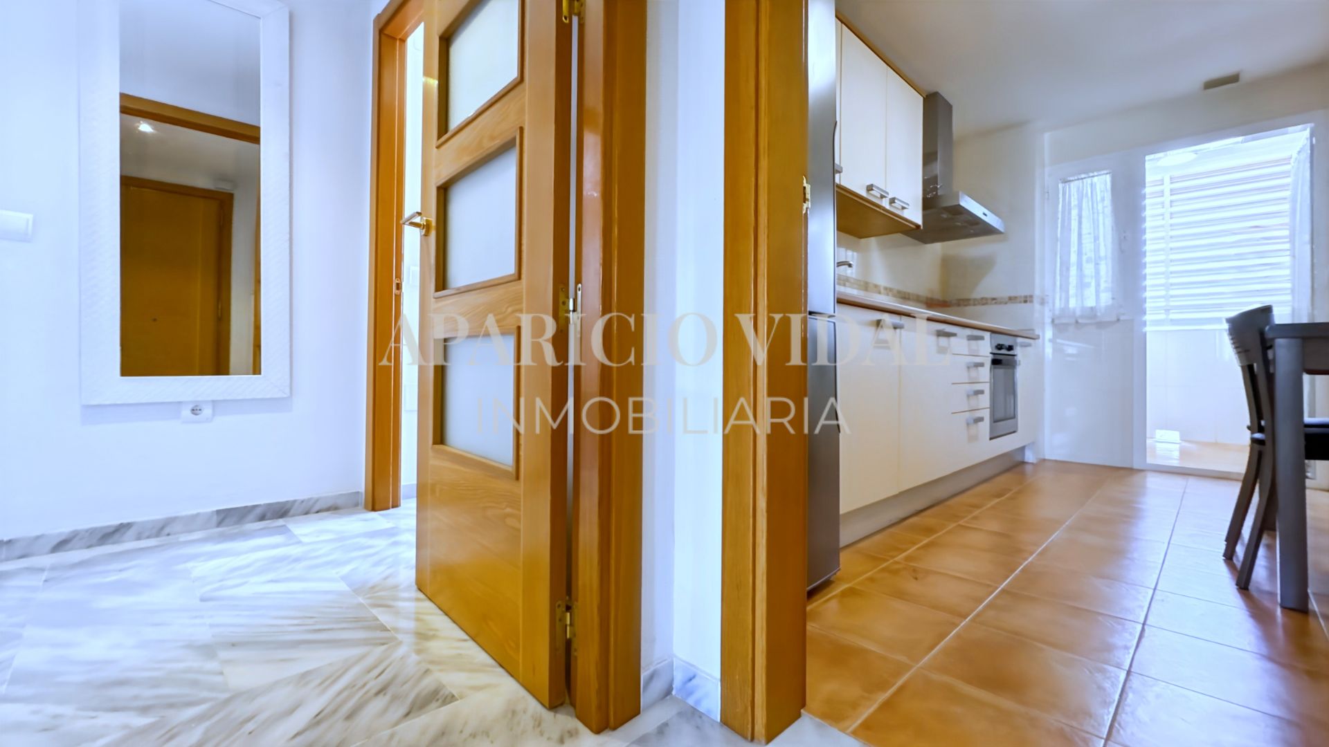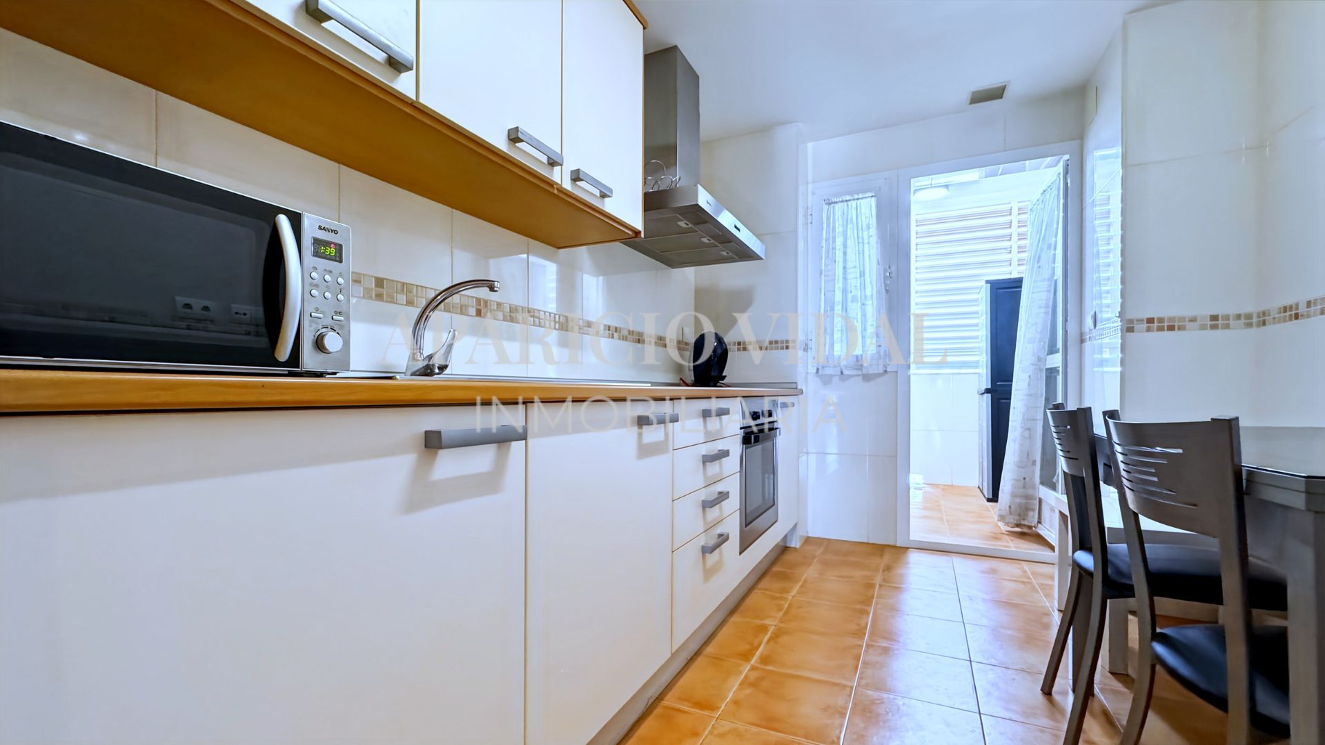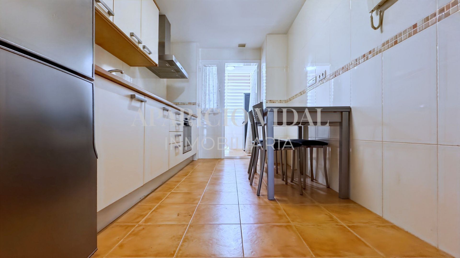 La cocina independiente cuenta con un práctico lavadero contiguo, optimizando la organización del hogar. Además, la vivienda dispone de grandes armarios empotrados, aportando una capacidad de almacenamiento excepcional.